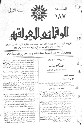 ترتيب الوقائع العراقية حسب السنة