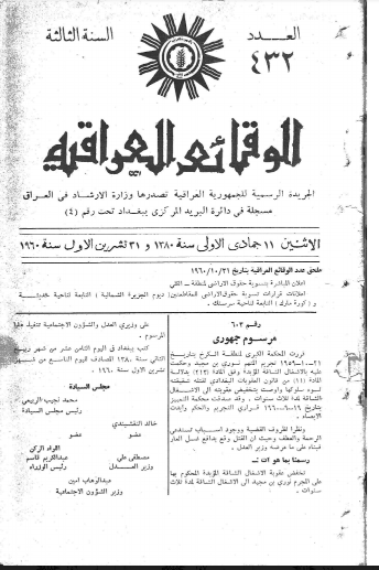 ترتيب الوقائع العراقية حسب السنة