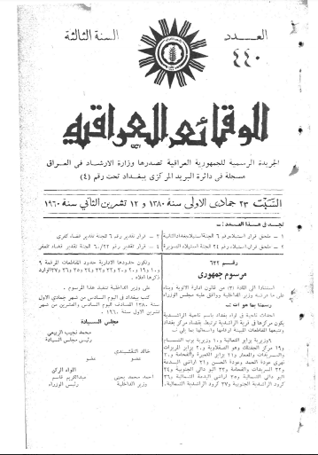 ترتيب الوقائع العراقية حسب السنة