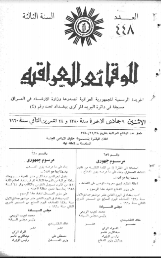 ترتيب الوقائع العراقية حسب السنة