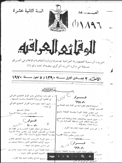ترتيب الوقائع العراقية حسب السنة