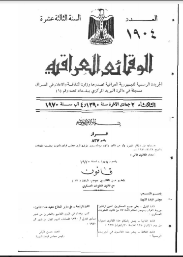 ترتيب الوقائع العراقية حسب السنة