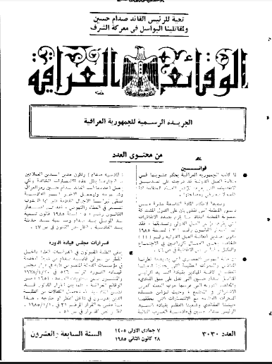 ترتيب الوقائع العراقية حسب السنة