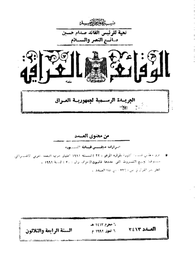 ترتيب الوقائع العراقية حسب السنة