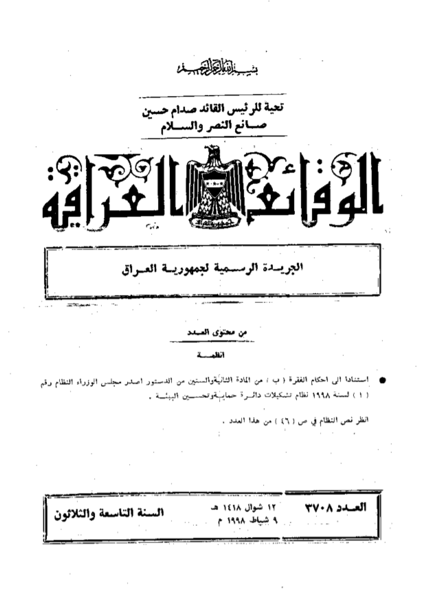 ترتيب الوقائع العراقية حسب السنة