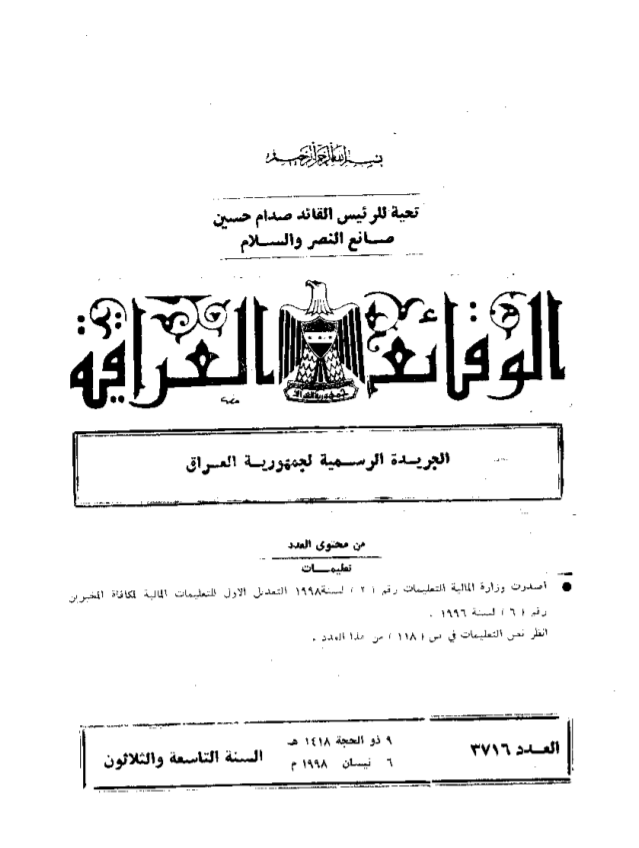 ترتيب الوقائع العراقية حسب السنة