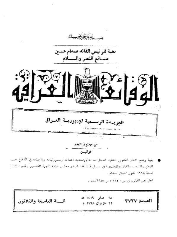 ترتيب الوقائع العراقية حسب السنة