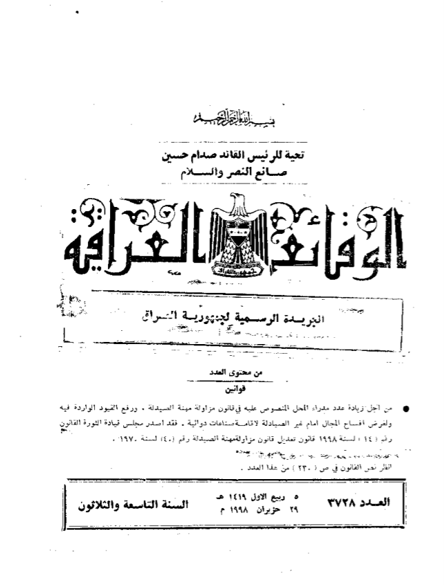 ترتيب الوقائع العراقية حسب السنة