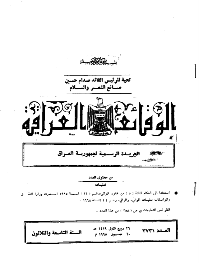ترتيب الوقائع العراقية حسب السنة