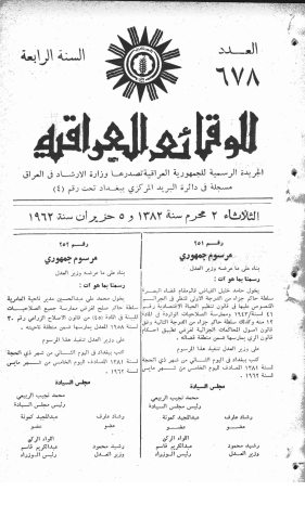 ترتيب الوقائع العراقية حسب السنة
