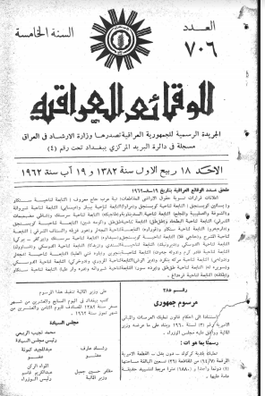 ترتيب الوقائع العراقية حسب السنة