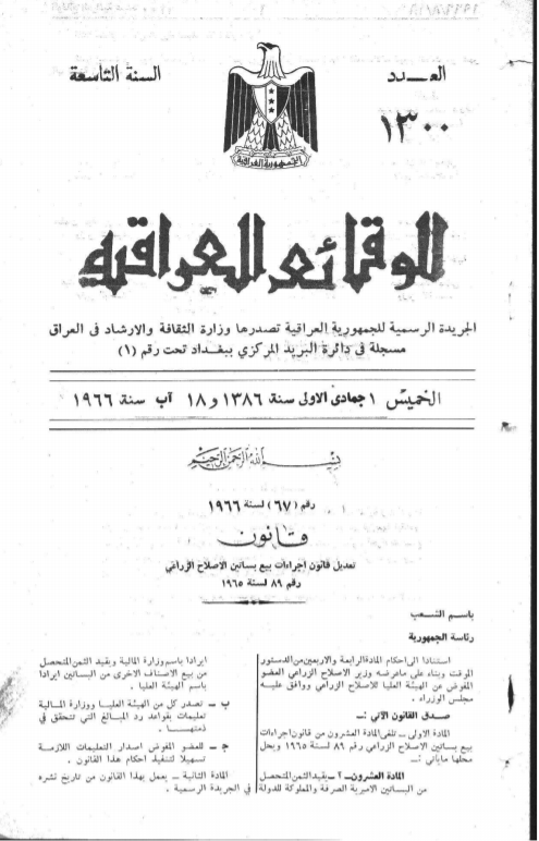 ترتيب الوقائع العراقية حسب السنة