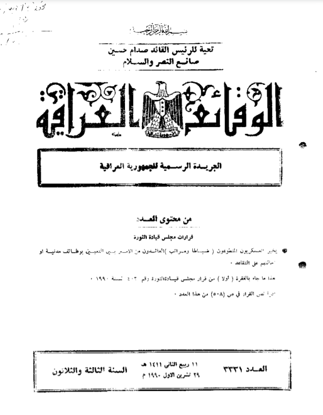 ترتيب الوقائع العراقية حسب السنة