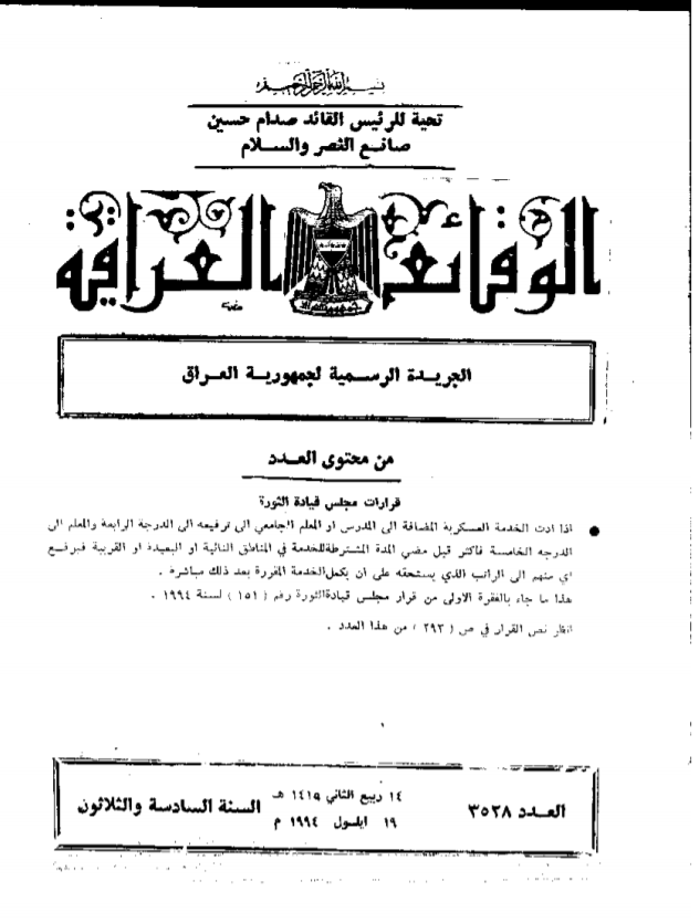 ترتيب الوقائع العراقية حسب السنة