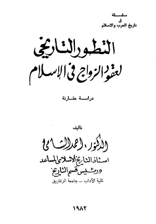 التطور التاريخي لعقود الزواج في الاسلام احمد الشامي