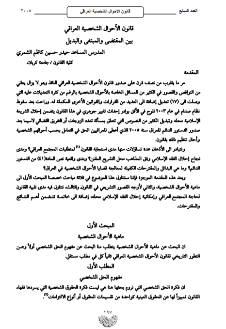 قانون الاحوال الشخصية العراقي بين المقتضى والمبتغى