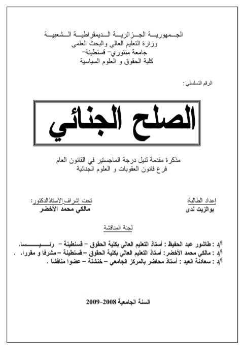 الصلح الجنائي بوالزيت ندى
