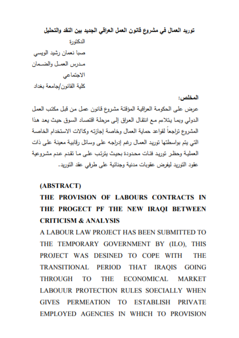 تورید العمال في مشروع قانون العمل العراقي الجدید بین النقد والتحلیل