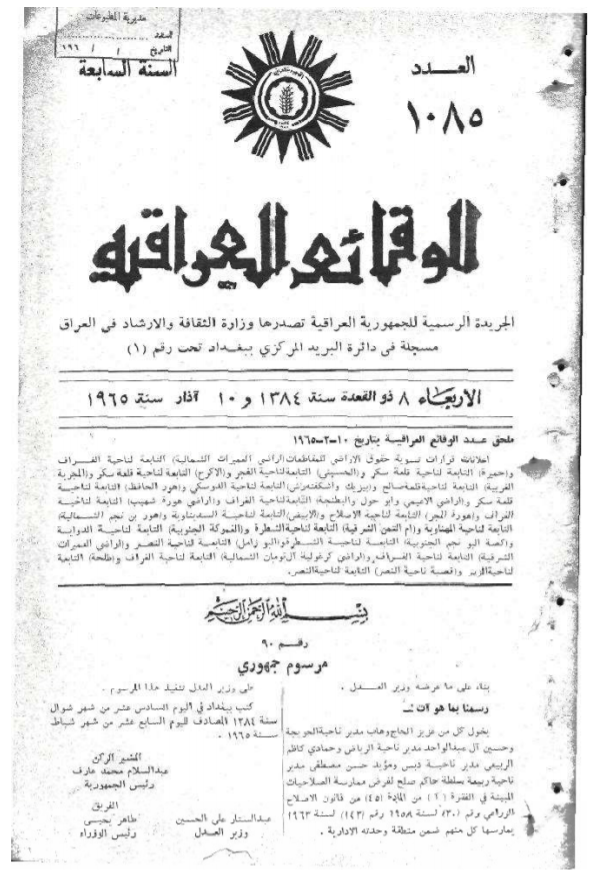 ترتيب الوقائع العراقية حسب السنة