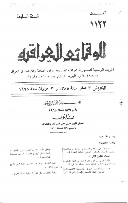 ترتيب الوقائع العراقية حسب السنة