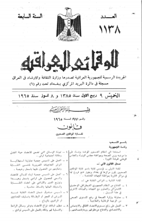 ترتيب الوقائع العراقية حسب السنة