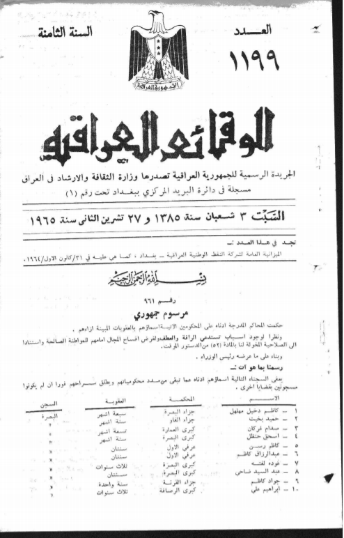 ترتيب الوقائع العراقية حسب السنة