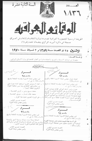 ترتيب الوقائع العراقية حسب السنة