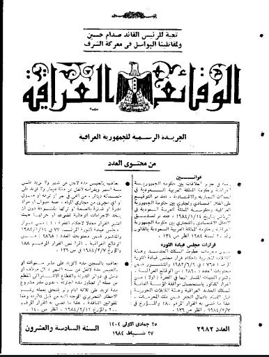 ترتيب الوقائع العراقية حسب السنة