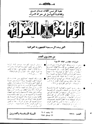 ترتيب الوقائع العراقية حسب السنة