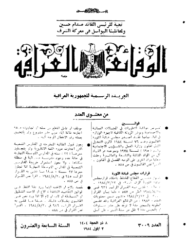 ترتيب الوقائع العراقية حسب السنة