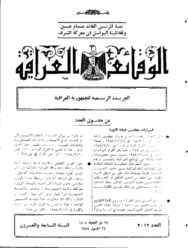 ترتيب الوقائع العراقية حسب السنة