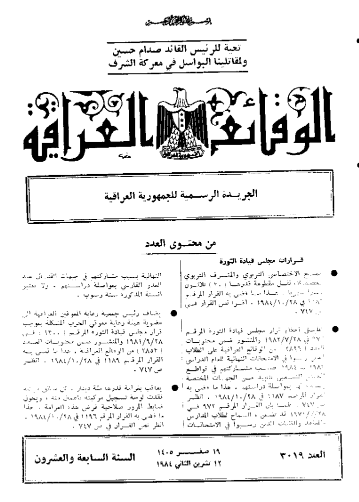 ترتيب الوقائع العراقية حسب السنة