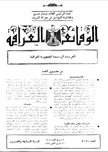 ترتيب الوقائع العراقية حسب السنة