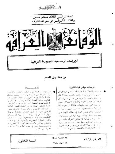 ترتيب الوقائع العراقية حسب السنة