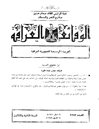ترتيب الوقائع العراقية حسب السنة