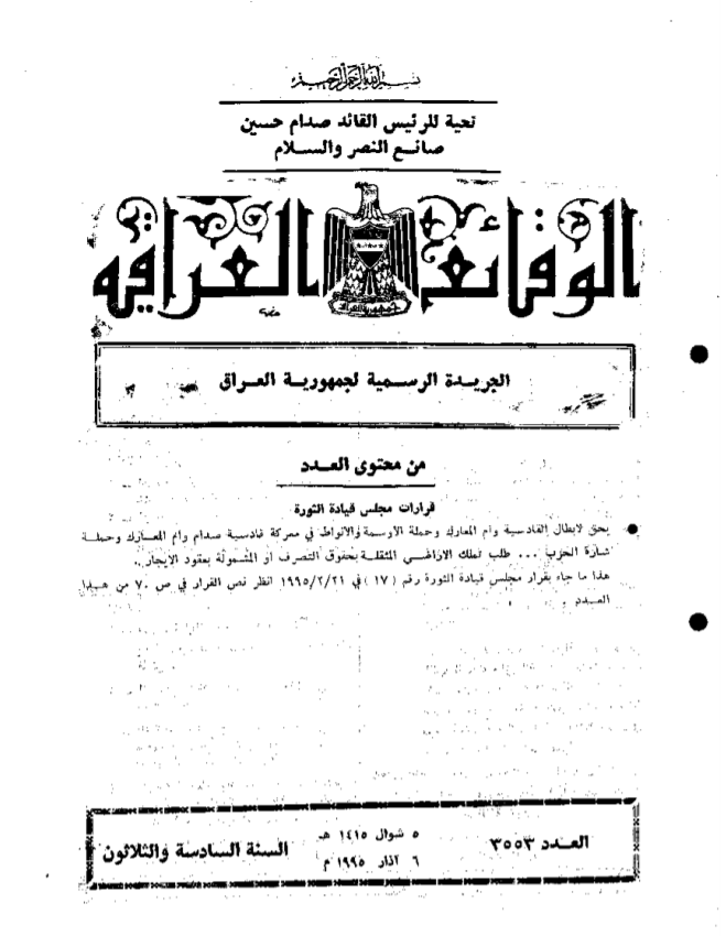 ترتيب الوقائع العراقية حسب السنة