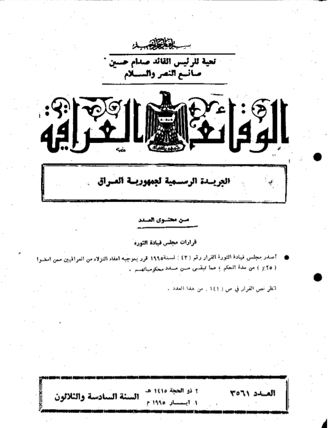 ترتيب الوقائع العراقية حسب السنة