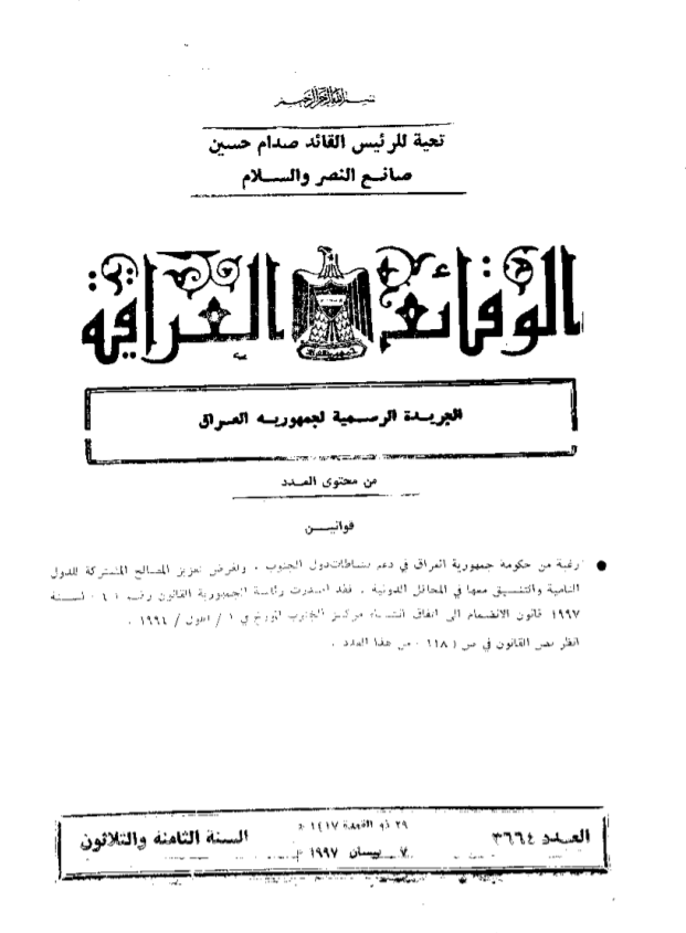ترتيب الوقائع العراقية حسب السنة