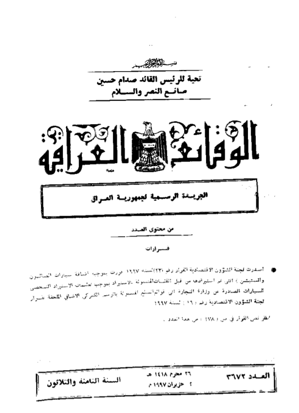 ترتيب الوقائع العراقية حسب السنة