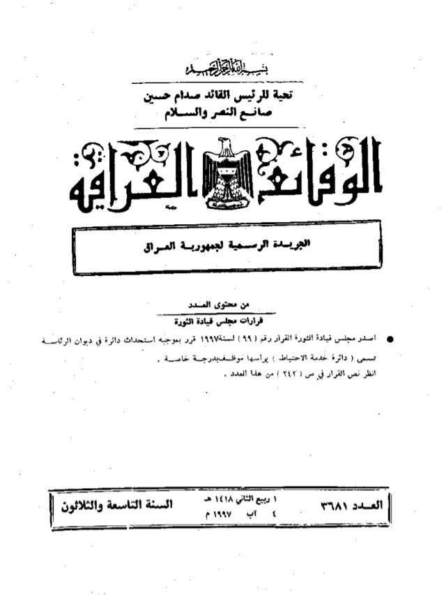 ترتيب الوقائع العراقية حسب السنة