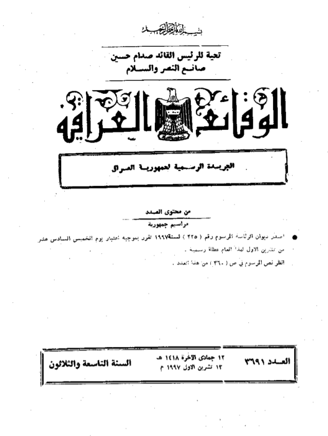ترتيب الوقائع العراقية حسب السنة