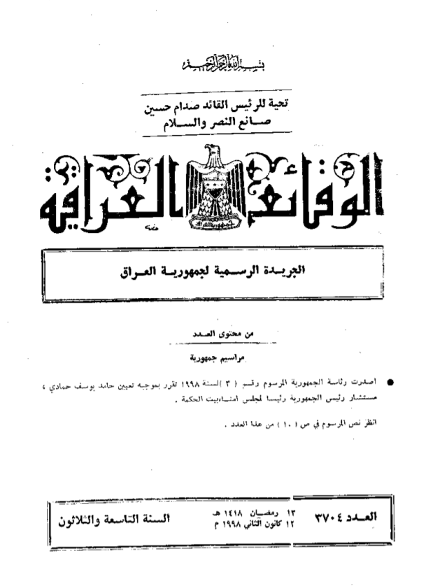 ترتيب الوقائع العراقية حسب السنة