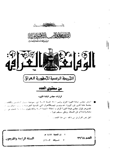ترتيب الوقائع العراقية حسب السنة