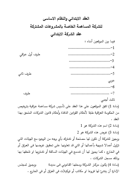 العقد الابتدائي والنظام الاساسى للشركة المساهمة 2