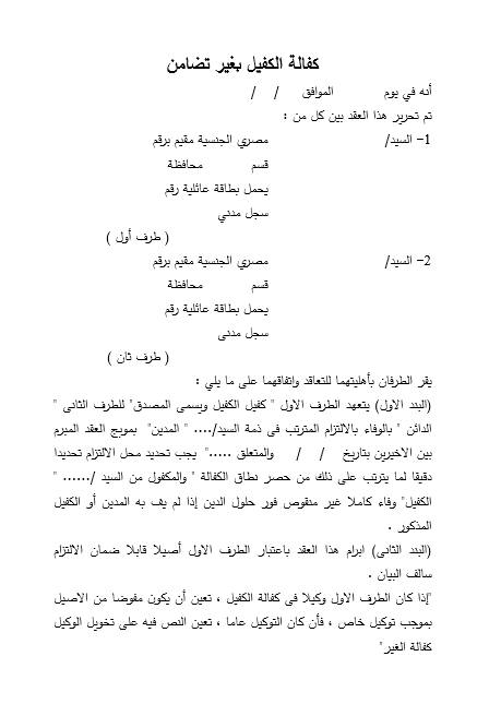 صيغة كفالة الكفيل بغير تضامن