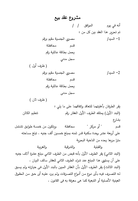 صيغة مشروع عقد بيع