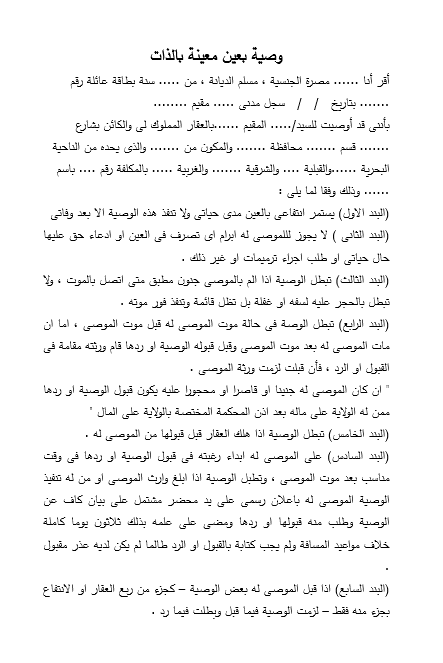 صيغة وصية بعين معينة بالذات