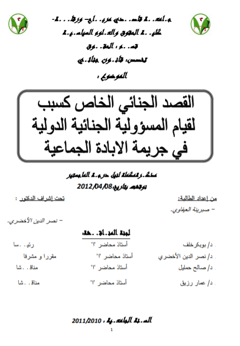 القصد الجنائي الخاص كسبب لقيام المسؤولية الجنائية الدولية في جريمة الابادة الجماعية لقراءة التفاصيل انقر هنا