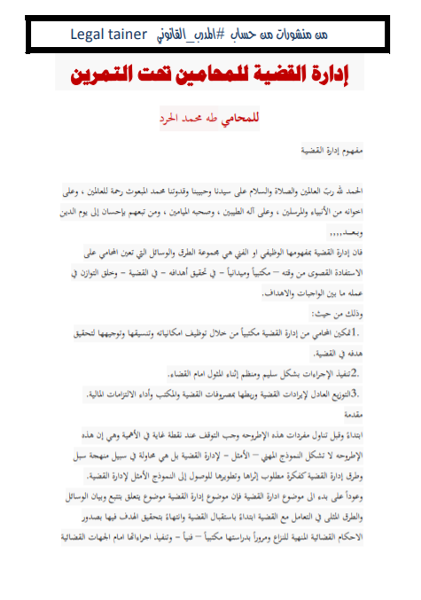 إدارة القضية للمحامين تحت التمرين