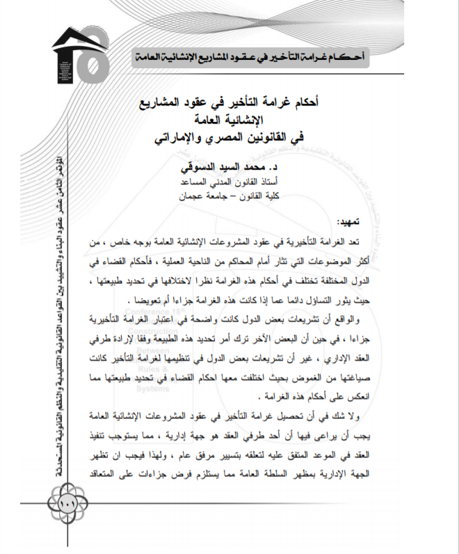 أحكام غرامة التأخير في عقود المشاريع الإنشائية العامة